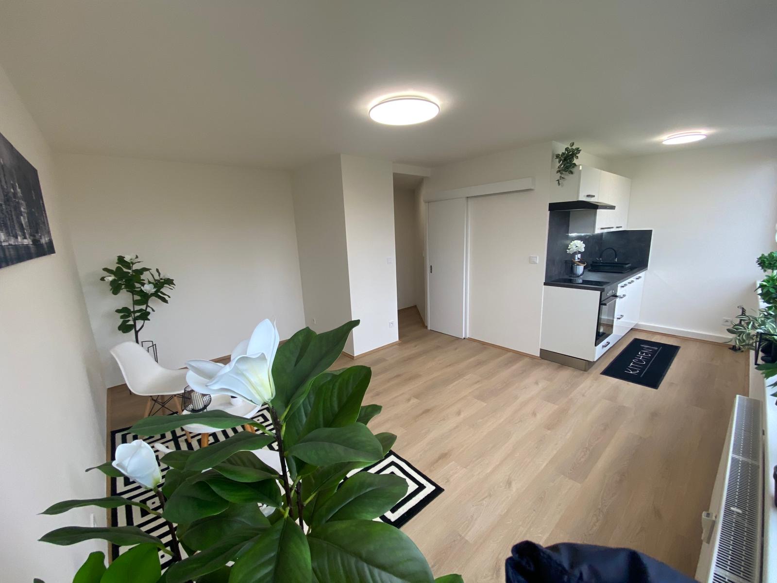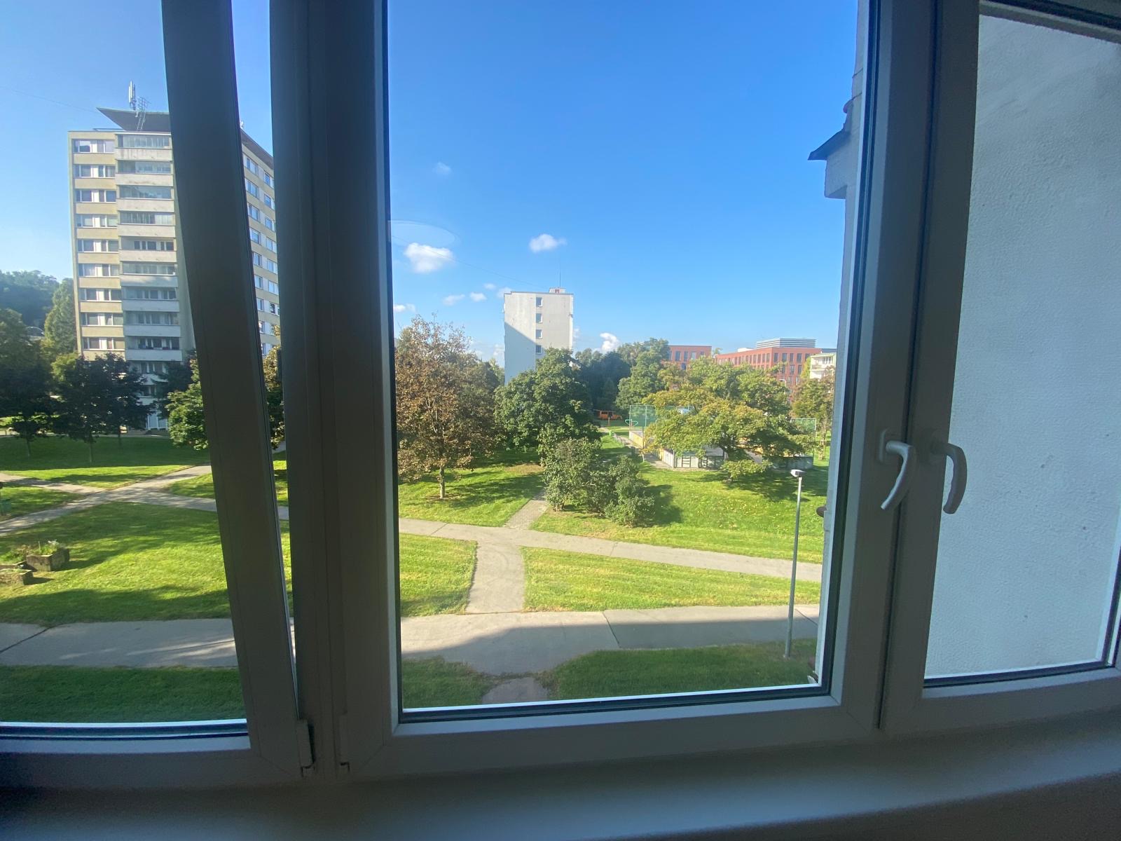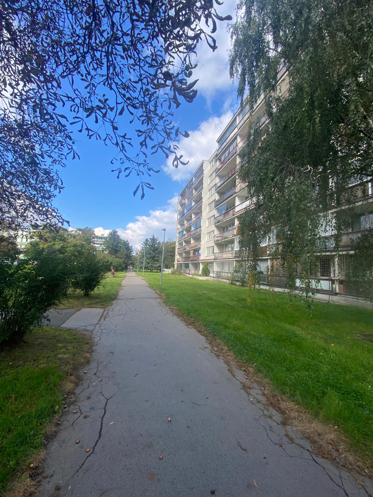 Byt 1+kk, 30 m2 se nachází ve 3.NP/z 8.NP, součástí bytu je komora, která je umístěna ve spojovací chodbě o patro výše, k užívání pro tři byty je lodžie (7 m2) naproti bytu. Byt prošel náročnou kompletní rekonstrukcí dle dnešních moderních trendů, bylo vyměněno a obnoveno úplně vše (veškeré rozvody – voda a odpady v plastu, elektrorozvody v mědi s certifikací, rozveden internet, stropní bodová světla, stropní LED světla na dálkové ovládání, nový topný radiátor, plast. okna, interiérové dveře v pojízdné liště, vstupní dveře, komplet přestavěna koupelna a WC, podlahy – dlažba a vinil, nová kuchyňská linka s vestavěnými elektrospotřebiči). Dispozice bytu: vstupní chodba, vpravo vybudován prostor pro velkou vestavěnou šatní skříň, vlevo vstup do koupelny dveřmi v pojízdné liště, zde je umístěn sprchový kout, WC, skříňka se zapuštěným umyvadlem a zrcadlem, vedle příprava pro pračku. Z předsíně vstupujeme do velkého prostoru pokoje, který je rozdělen na zónu spací a obývací, kolem dokola zásuvky + internet. připojení. Pokoj je otevřen do kuchyně, která je vybavena novou kuchyňskou linkou v šedobílém designu se zabudovanými elektrospotřebiči a LED podsvícením. Byt je atypický tím, že přes celý pokoj i kuchyň jsou instalována okna směrem na JZ, tudíž je byt velmi světlý. Promyšlený interiérový potencionál uspokojí i nejnáročnější zájemce. Byt je laděn do světlých tónů, které mu dávají vzdušnost, neboť bílá linie prostor opticky rozšiřuje. Úkolem bylo vytvořit novou koncepci zcela vybydleného bytu na komfortní, což se podařilo. Měs. poplatky 3 205 Kč (FO 690 Kč, správa 168 Kč, vodné stočné 400 Kč, teplá voda 780 Kč, popelnice 100 Kč, spol. el. 25 Kč, pojištění 30 Kč, odměna v. 180 Kč, teplo 601 Kč, úklid 85 Kč, výtah 70 Kč, provoz 76 Kč). Parkování v modrých rezidenčních zónách u domu. Byt je vhodný nejen k vlastnímu bydlení, ale rovněž i k lukrativnímu pronájmu.