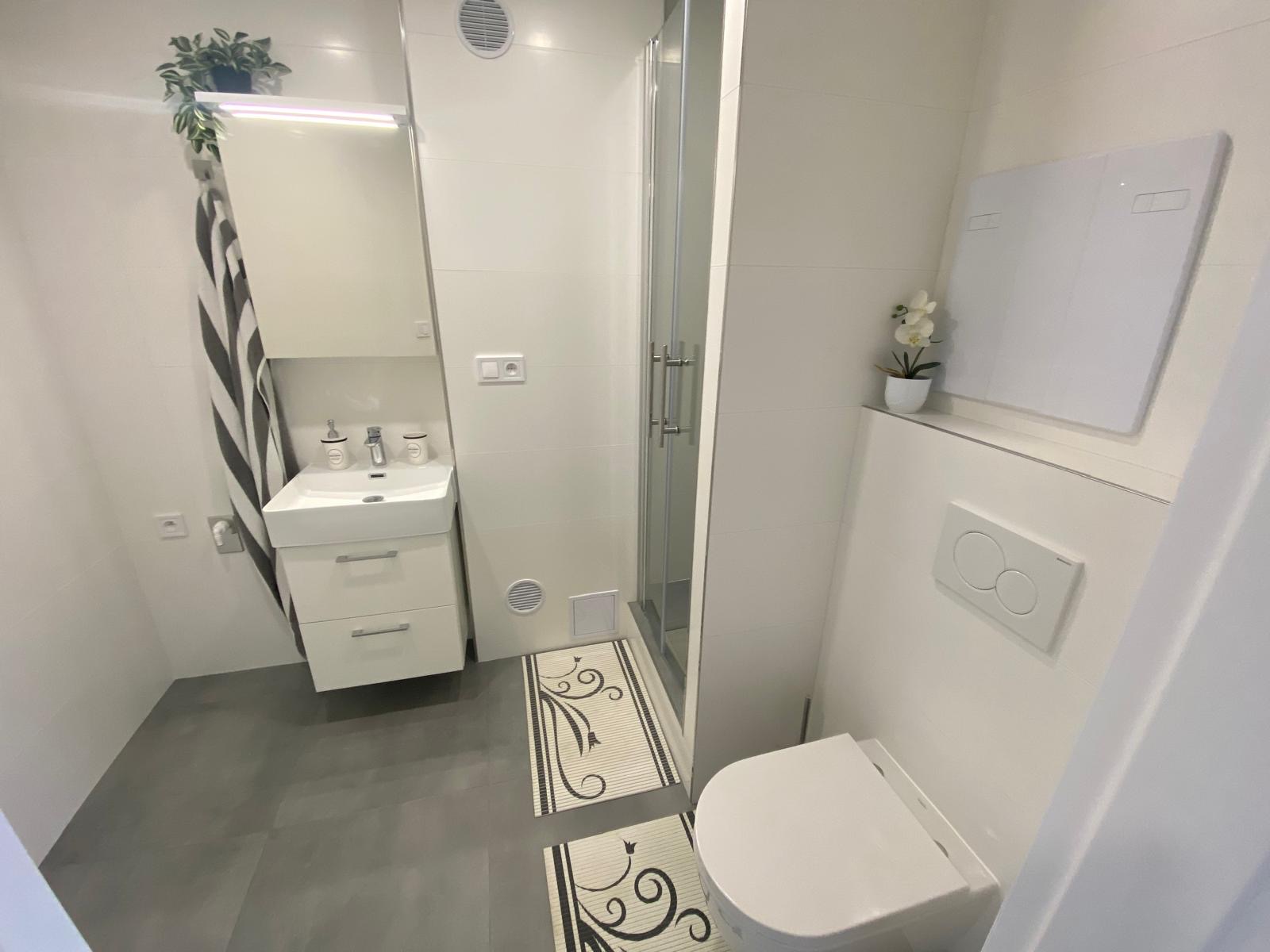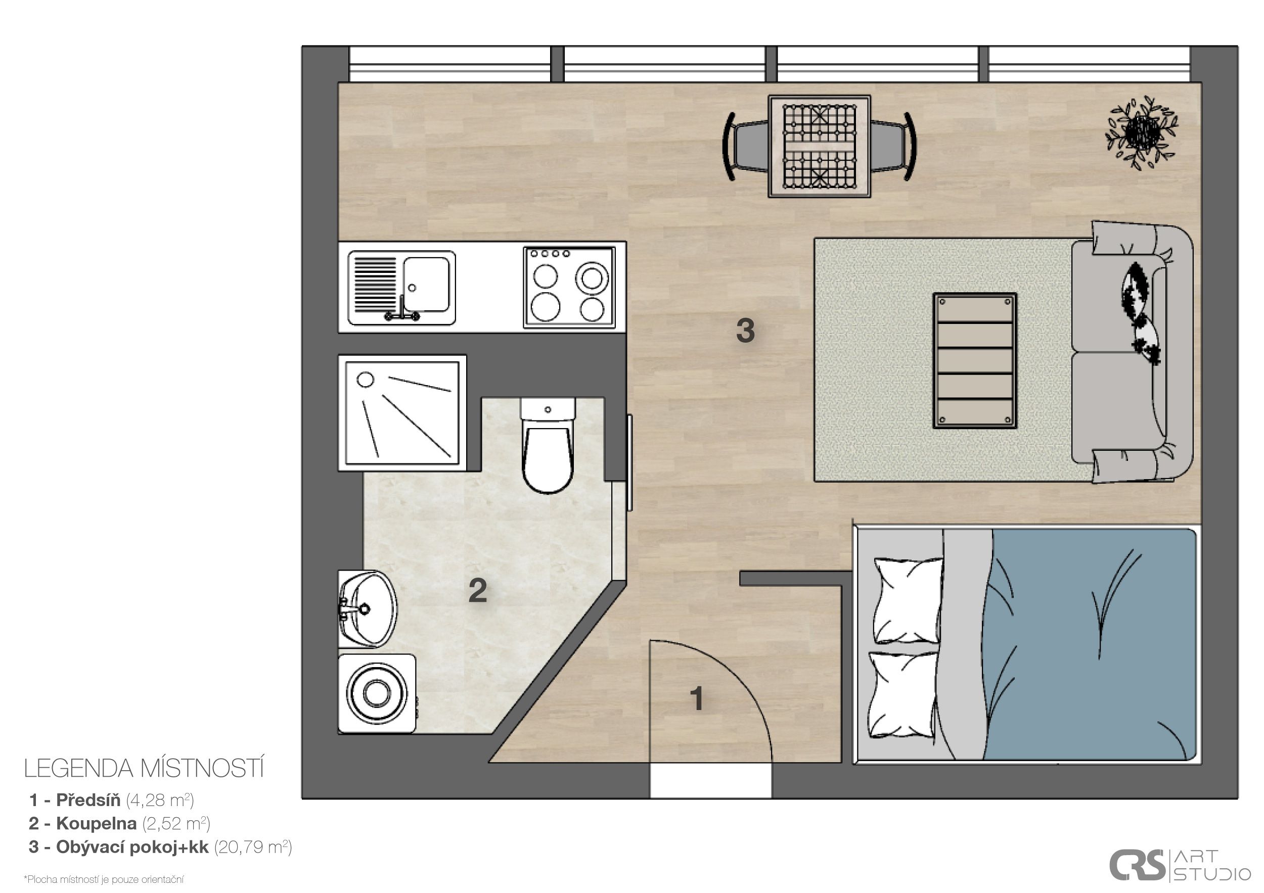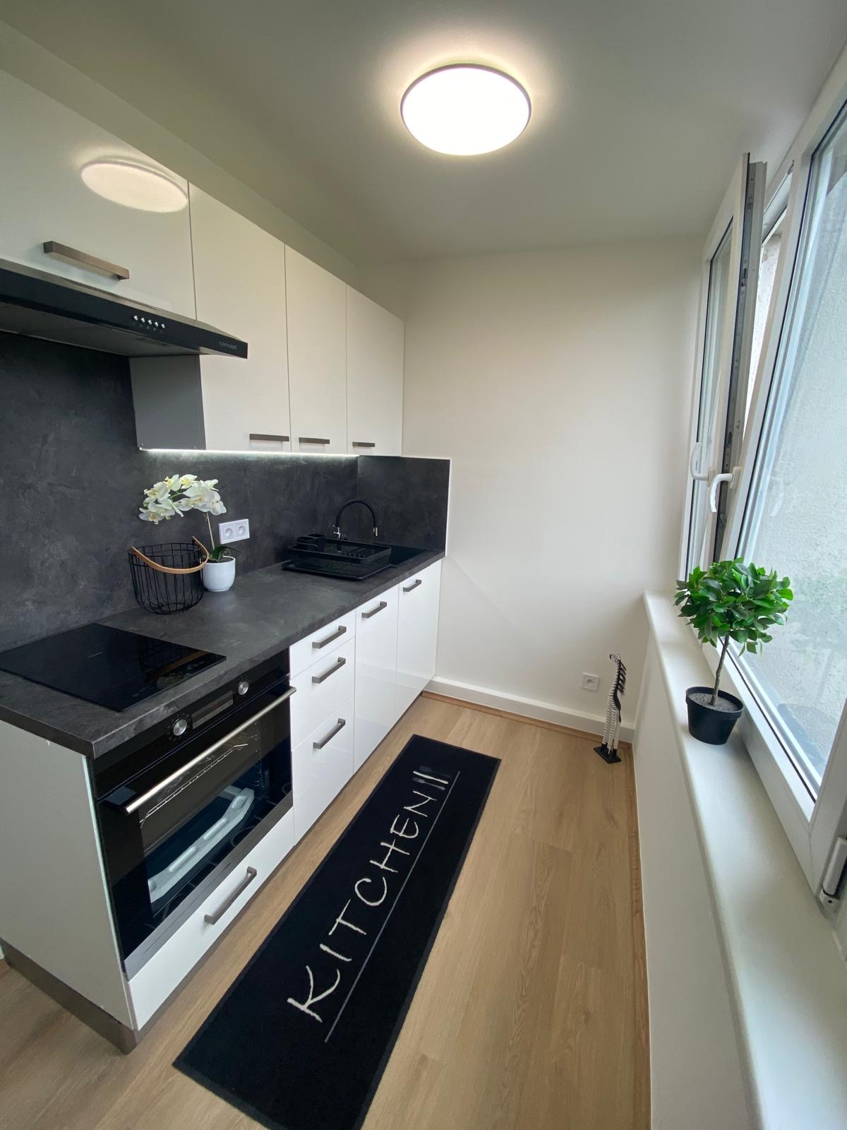 Byt 1+kk, 30 m2 se nachází ve 3.NP/z 8.NP, součástí bytu je komora, která je umístěna ve spojovací chodbě o patro výše, k užívání pro tři byty je lodžie (7 m2) naproti bytu. Byt prošel náročnou kompletní rekonstrukcí dle dnešních moderních trendů, bylo vyměněno a obnoveno úplně vše (veškeré rozvody – voda a odpady v plastu, elektrorozvody v mědi s certifikací, rozveden internet, stropní bodová světla, stropní LED světla na dálkové ovládání, nový topný radiátor, plast. okna, interiérové dveře v pojízdné liště, vstupní dveře, komplet přestavěna koupelna a WC, podlahy – dlažba a vinil, nová kuchyňská linka s vestavěnými elektrospotřebiči). Dispozice bytu: vstupní chodba, vpravo vybudován prostor pro velkou vestavěnou šatní skříň, vlevo vstup do koupelny dveřmi v pojízdné liště, zde je umístěn sprchový kout, WC, skříňka se zapuštěným umyvadlem a zrcadlem, vedle příprava pro pračku. Z předsíně vstupujeme do velkého prostoru pokoje, který je rozdělen na zónu spací a obývací, kolem dokola zásuvky + internet. připojení. Pokoj je otevřen do kuchyně, která je vybavena novou kuchyňskou linkou v šedobílém designu se zabudovanými elektrospotřebiči a LED podsvícením. Byt je atypický tím, že přes celý pokoj i kuchyň jsou instalována okna směrem na JZ, tudíž je byt velmi světlý. Promyšlený interiérový potencionál uspokojí i nejnáročnější zájemce. Byt je laděn do světlých tónů, které mu dávají vzdušnost, neboť bílá linie prostor opticky rozšiřuje. Úkolem bylo vytvořit novou koncepci zcela vybydleného bytu na komfortní, což se podařilo. Měs. poplatky 3 205 Kč (FO 690 Kč, správa 168 Kč, vodné stočné 400 Kč, teplá voda 780 Kč, popelnice 100 Kč, spol. el. 25 Kč, pojištění 30 Kč, odměna v. 180 Kč, teplo 601 Kč, úklid 85 Kč, výtah 70 Kč, provoz 76 Kč). Parkování v modrých rezidenčních zónách u domu. Byt je vhodný nejen k vlastnímu bydlení, ale rovněž i k lukrativnímu pronájmu.