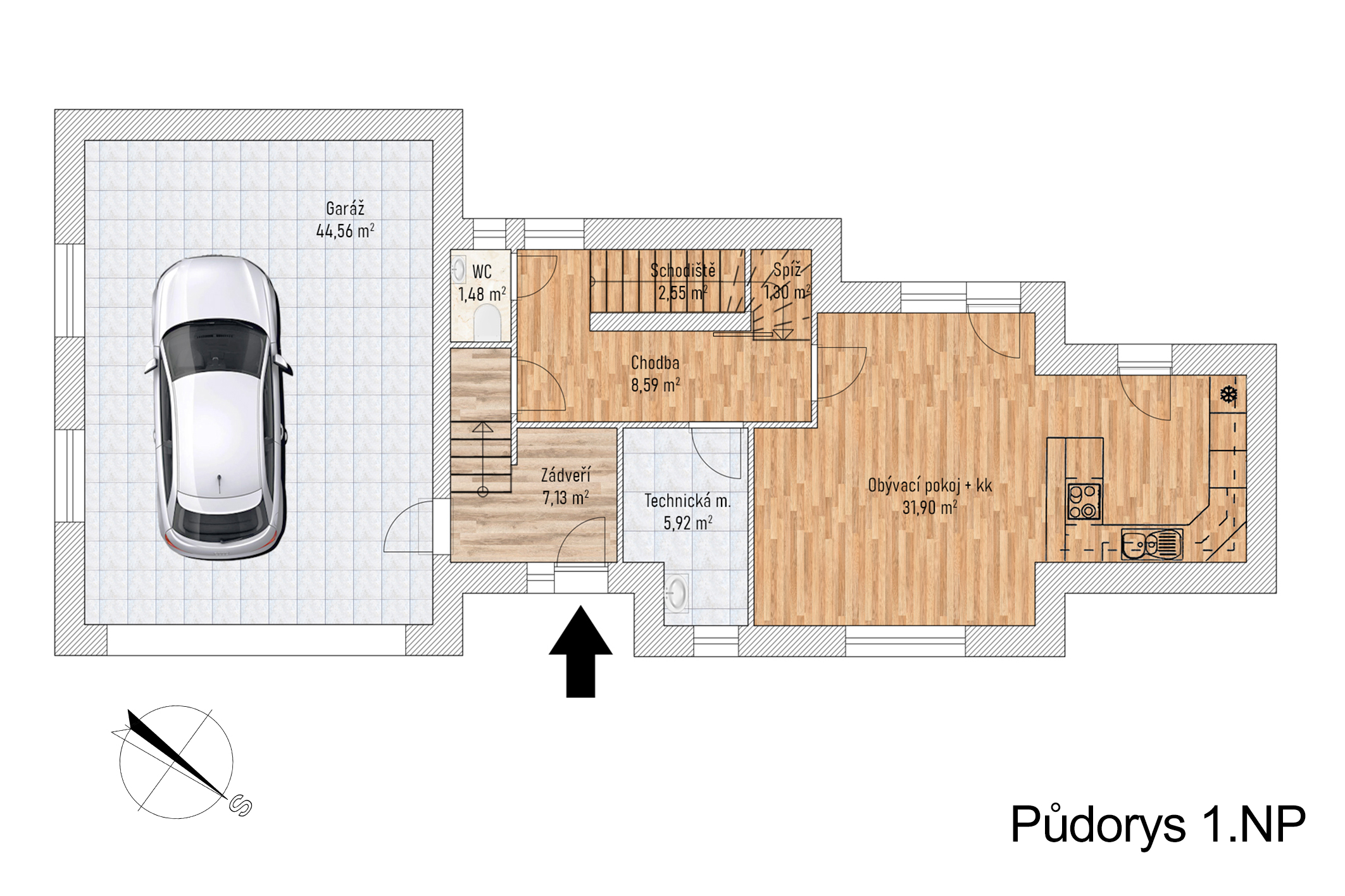 Nový RD 4+kk/dvojgaráž, poz. 1000m2, obec Bílkovice, okr. Benešov