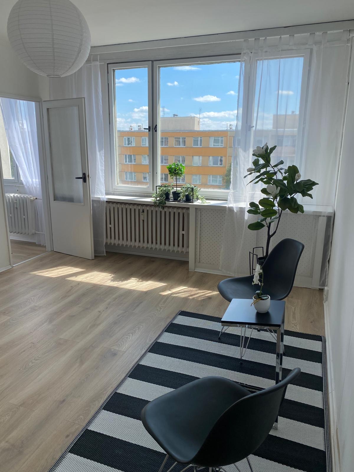 Námi nabízený byt se nachází v klidné ulici se stromořadím a kolem dokola parky. Dům prošel kompletní revitalizací. Byt 1+kk, 26,31 m2 je situován v 7.NP, součástí prodeje bytu je komora (1 m2) umístěná hned vedle bytu. Byt je velmi dobře udržovaný, prošel částečnou rekonstrukcí (nové plovoucí podlahy, instalovaná nová kuchyňská linka v bílém provedení, výmalba). Dispozice bytu: vstupní chodba (2,48 m2)s vestavěnou šatnou, naproti vstupu koupelna (2 m2) s vanou, vedle WC (1 m2). Z předsíně je vstup do prostorného pokoje (16,42 m2) s krásným panoramatickým výhledem do okolí. Odtud je vstup do kuchyně (3,44 m2) s oknem, kde byla nově instalována nová kuchyňská linka. Byt je velmi světlý, útulný, s příjemnou atmosférou. Topení je dálkové s odečty, prostorný uzamykatelný balkon pro dva byty na patře, parkování před domem v modrých rezidenčních zónách.