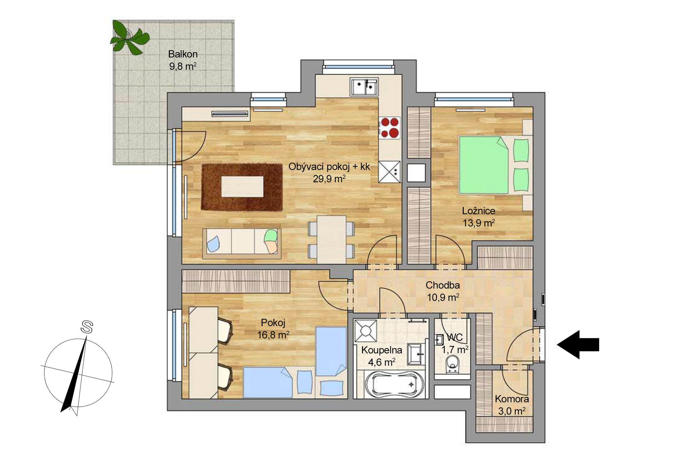Pěkný byt 3+kk/terasa/garážové stání/moto stání, 90m2, ul. K Beranovu, Praha 8