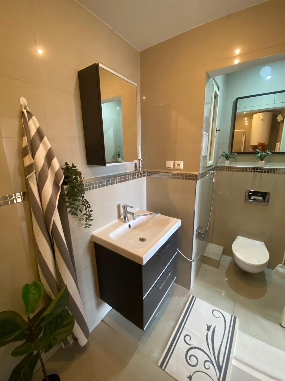 Bytový dům má v zadní části dvůr se zahradou, v suterénu se nacházejí velké sklepy. Celý dům prošel náročnou rekonstrukcí vzhledem k památkově chráněnému území. Námi nabízený byt 2+1, 58,5 m2, se nachází ve 2.p/ze 4.p,je po částečné rekonstrukci, orientace na západ, topení WAW, nová okna, plovoucí podlahy, parkety a dlažba, sklep 8 m2. Dispozice bytu: Kuchyně s kuchyňskou linkou (lednice, plynový sporák s troubou, digestoř), vedle komora s okénkem do světlíku. Z kuchyně jsou 2 samostatné vstupy do pokojů – obývacího pokoje a ložnice. Z obývacího pokoje je vstup do koupelny, která prošla před 5 lety kompletní rekonstrukcí. Je v šedobílém odstínu, velmi prostorná, vlevo umístěn sprchový kout, pračka, bojler na ohřev vody, vpravo WC, okénko do světlíku, uprostřed umyvadlo se skříňkou a zrcadlo. Byt je velmi světlý, slunný, útulný, parkování pro rezidenty v modrých zónách před domem nebo na parkovišti pod domem.